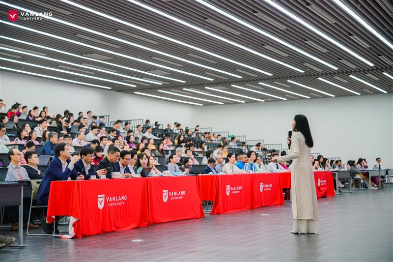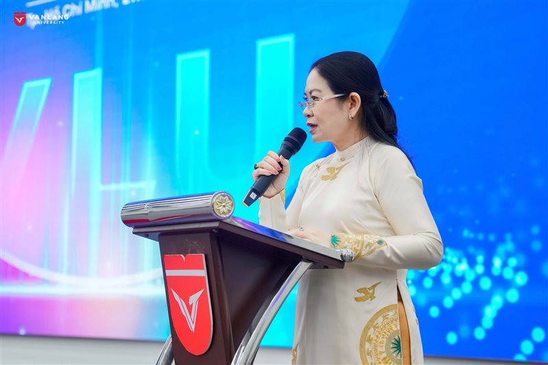 Bà Bùi Thị Vân Anh – Bí thư Đảng ủy, Chủ tịch Hội đồng Trường nhấn mạnh vai trò trung tâm của con người trong chiến lược phát triển bền vững của Văn Lang, đồng thời khẳng định mối quan hệ song hành giữa Nhà trường – người lao động – tổ chức Công đoàn, hướng đến hiệu suất, kỷ luật và sự tôn trọng con người trong giai đoạn mới.