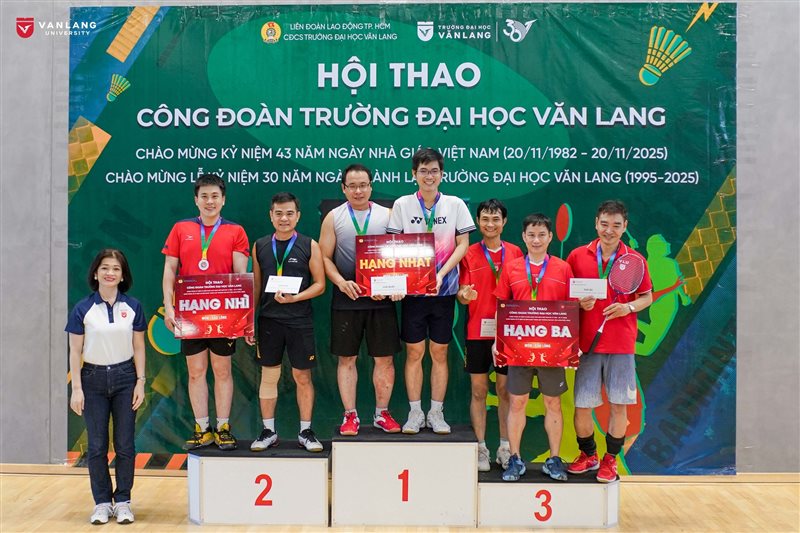 Hướng tới kỷ niệm 43 năm Ngày Nhà giáo Việt Nam (20/11/1982 – 20/11/2025) và 30 năm hành trình kiến tạo của Trường Đại học Văn Lang (1995 – 2025), ngày 09/11/2025, Công đoàn Trường đã tổ chức thành công Chung kết Bộ môn Cầu lông. Với tinh thần thi đấu sôi động, trận chung kết đã trở thành cơ hội giúp Thầy Cô Văn Lang nâng cao sức khỏe thể chất và tinh thần, thắt chặt tình đồng nghiệp, lan tỏa mạnh mẽ văn hóa rèn luyện thân thể trong cộng đồng.
